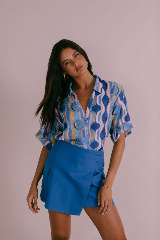 Apella Cropped Shirt - Cobalt Blue