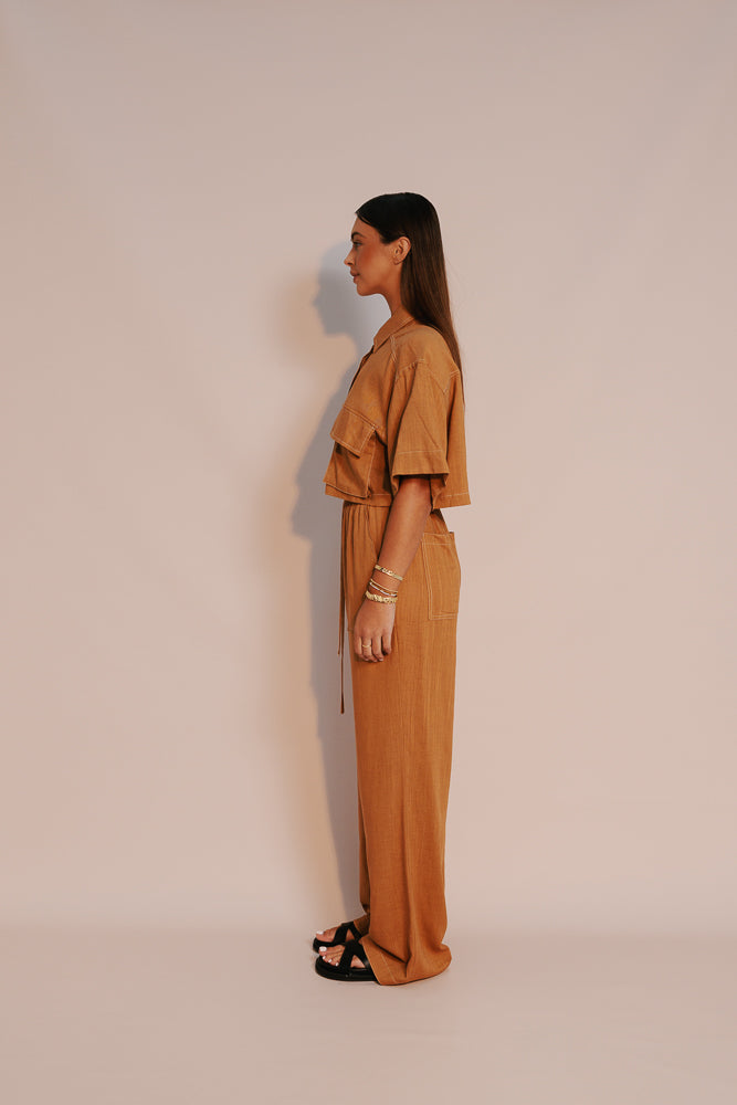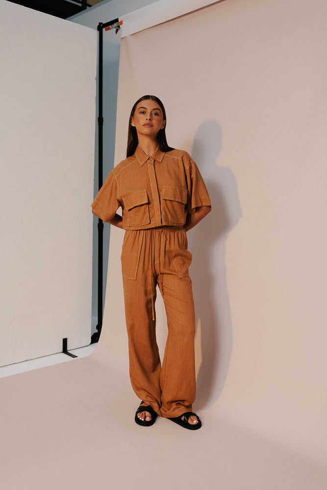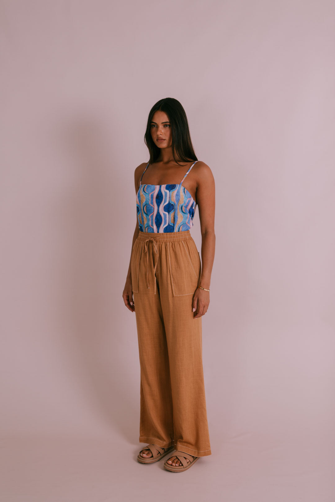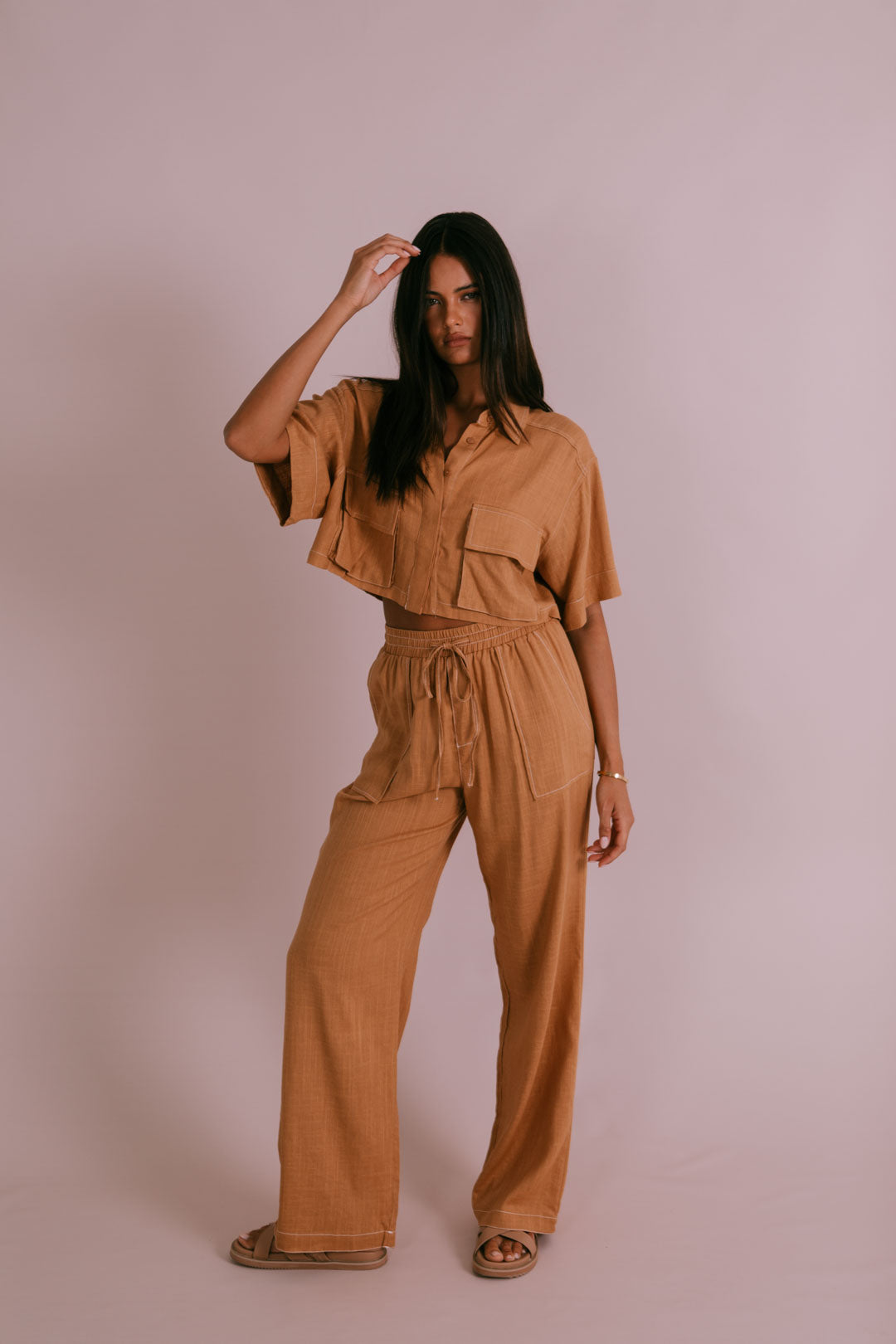The Rembrandt Pant in Caramel feature a relaxed, flowy fit that pairs effortless style with practical details. Offering a wide-leg silhouette and contrast thread, these linen pants are designed for comfort and versatility. The Rembrandt Pant is perfect for casual yet elevated looks, offering a versatile addition to any wardrobe.