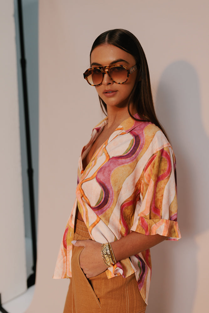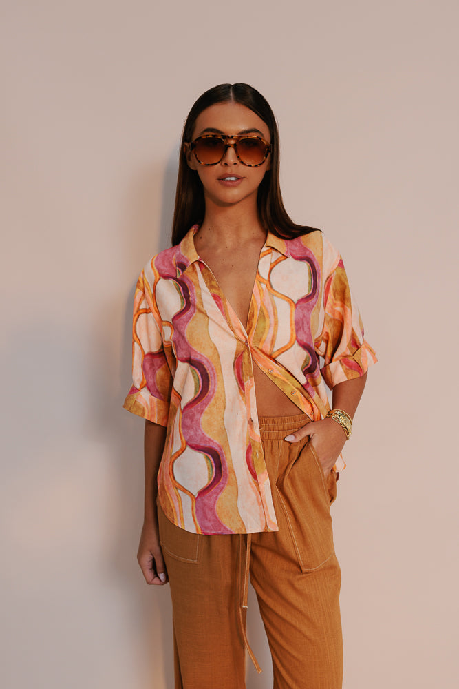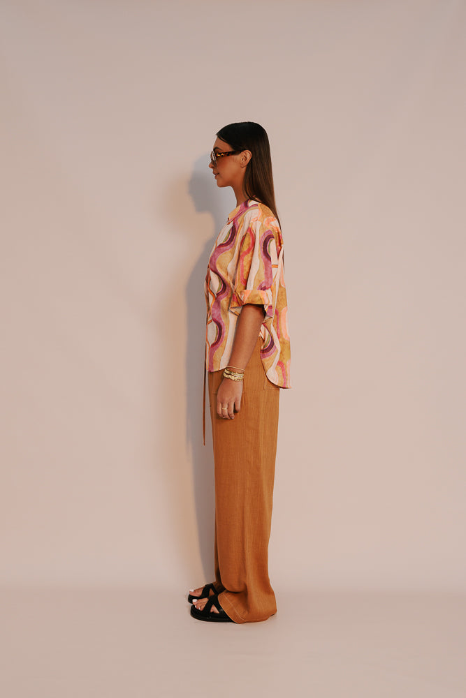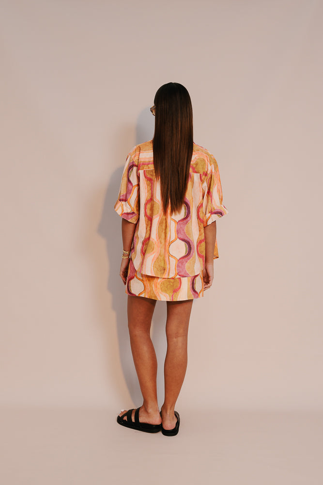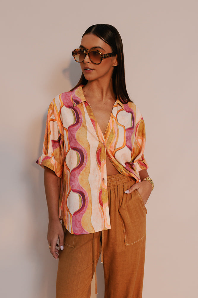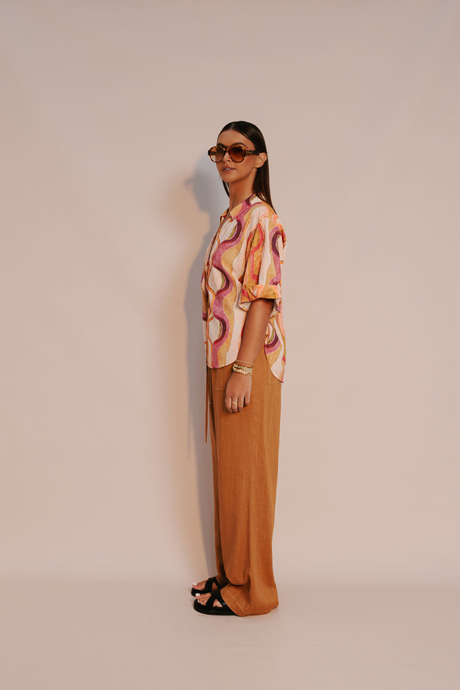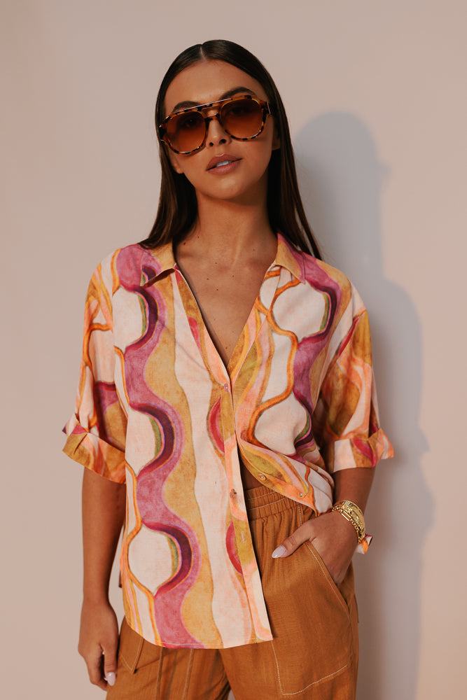 The Sanzio Shirt in Paris Print features the Zella exclusive water colour print, perfect for making a stylish statement. Designed with a classic collar and cuffed sleeves, complemented with fabric-covered buttons for a refined finish. The Sanzio Shirt combines contemporary style with everyday ease, making a versatile addition to any wardrobe.