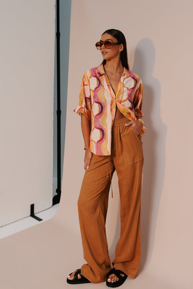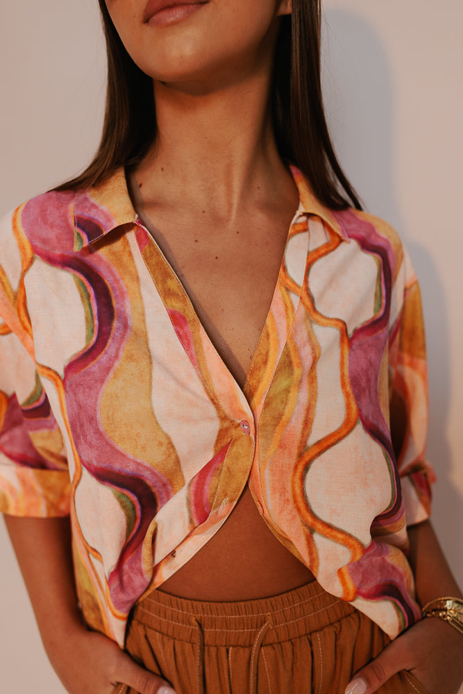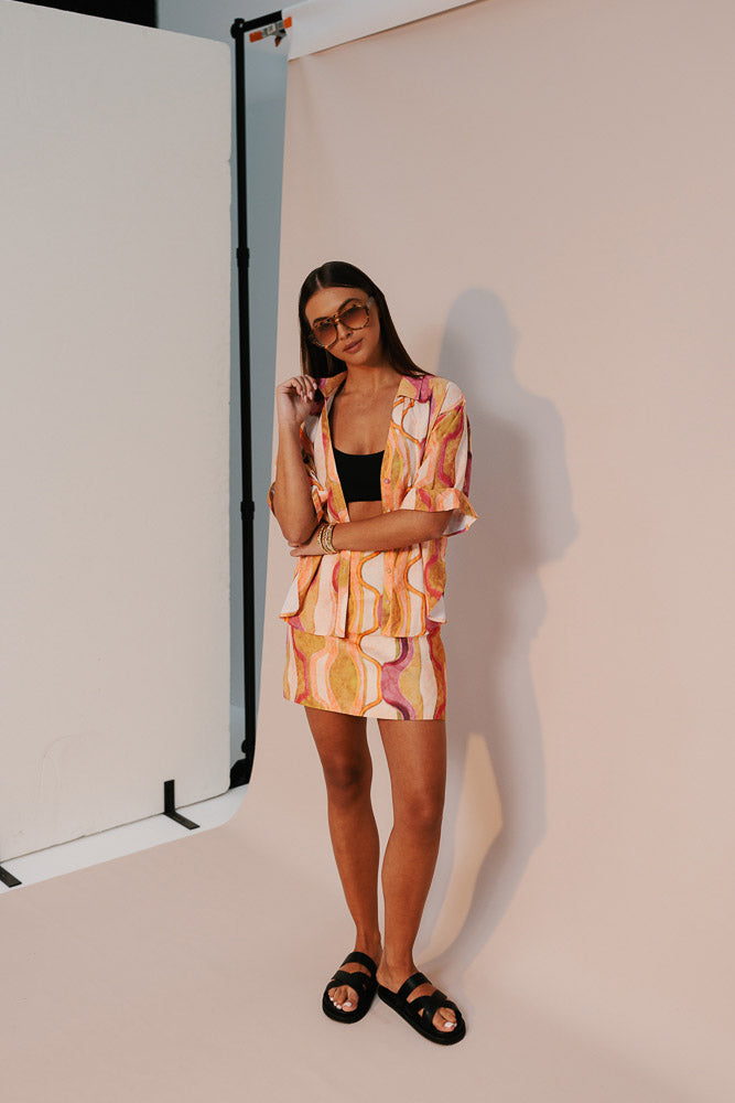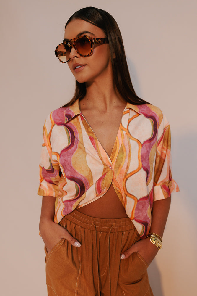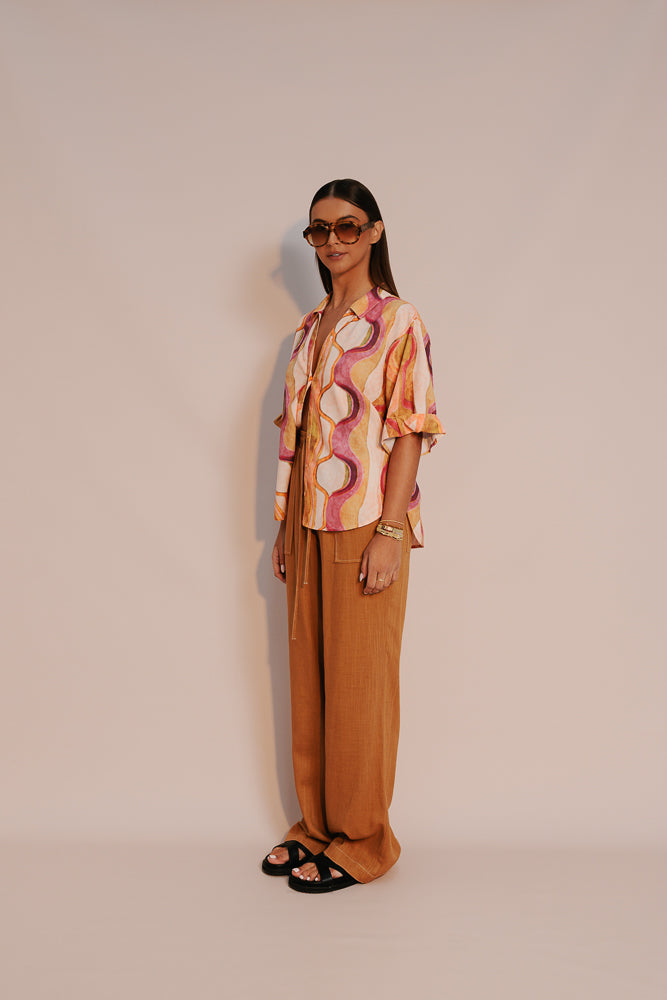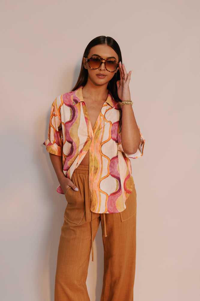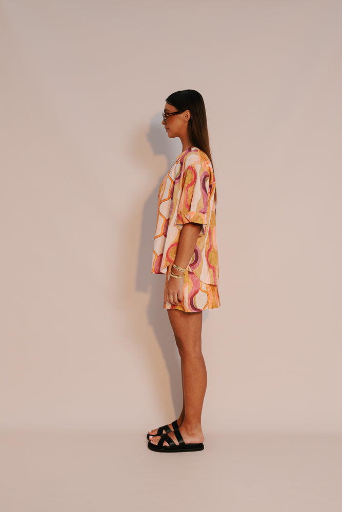 The Sanzio Shirt in Paris Print features the Zella exclusive water colour print, perfect for making a stylish statement. Designed with a classic collar and cuffed sleeves, complemented with fabric-covered buttons for a refined finish. The Sanzio Shirt combines contemporary style with everyday ease, making a versatile addition to any wardrobe.